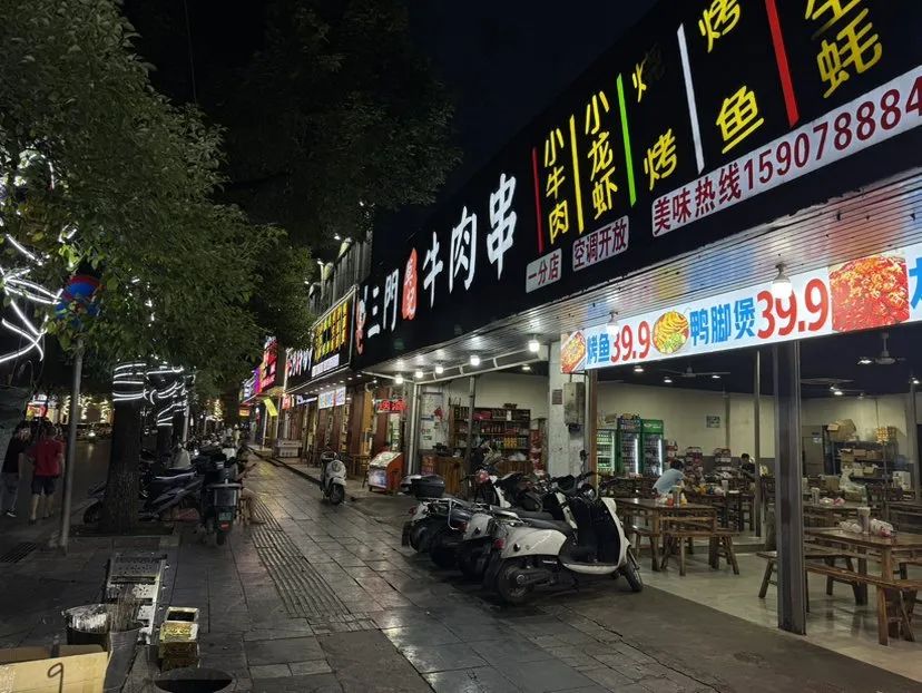 在仙湖路夜市,烧烤的魅力深入人心,整条街便化身为热闹非凡的美食江湖,也是桂林本地风味的鲜活传承地。这里满街打着“龙胜三门牛肉”招牌的烧烤店,每一口都是桂林人记忆深处的味道。