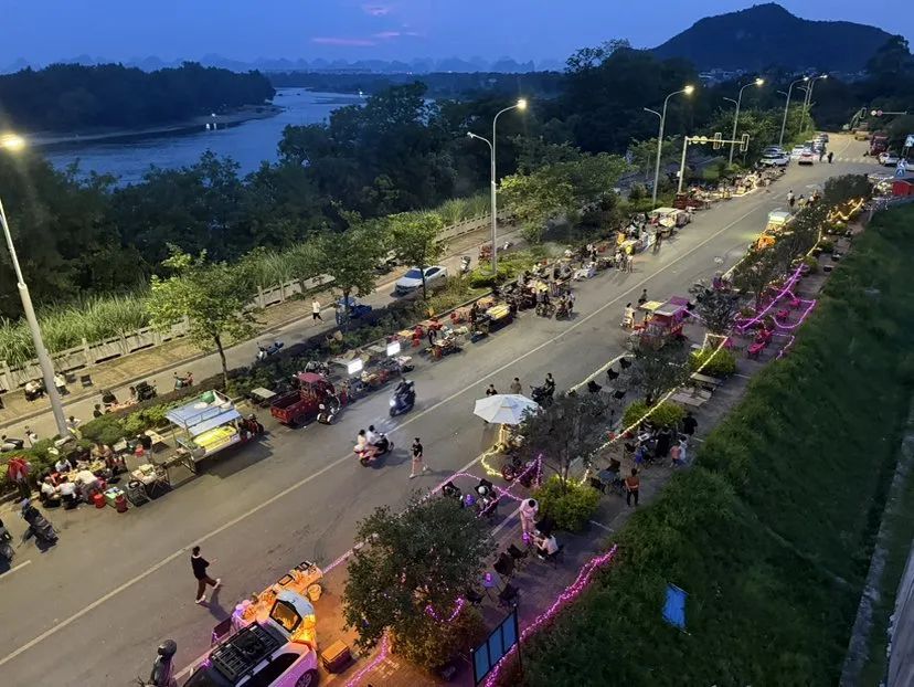 这是一场中西合璧的饕餮盛宴,既能嗦一碗地道的桂林米粉,也能品一顿鲜辣的啤酒鱼。特色手作店、主题酒吧更如磁石般吸引着往来游客,让这场夜色狂欢永不散场。