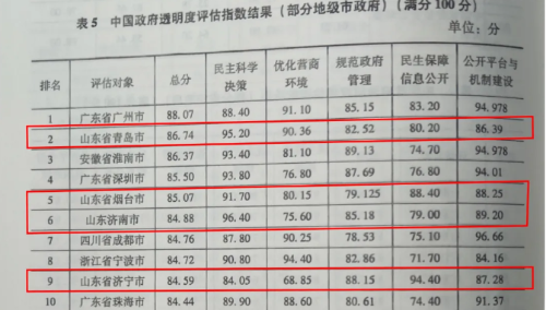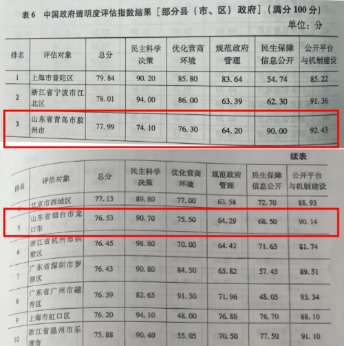 中国政府透明度指数报告(2023)公布:山东省位列省级第三位,青岛市烟台市位列地级市前五,胶州市龙口市位列县级市前五
