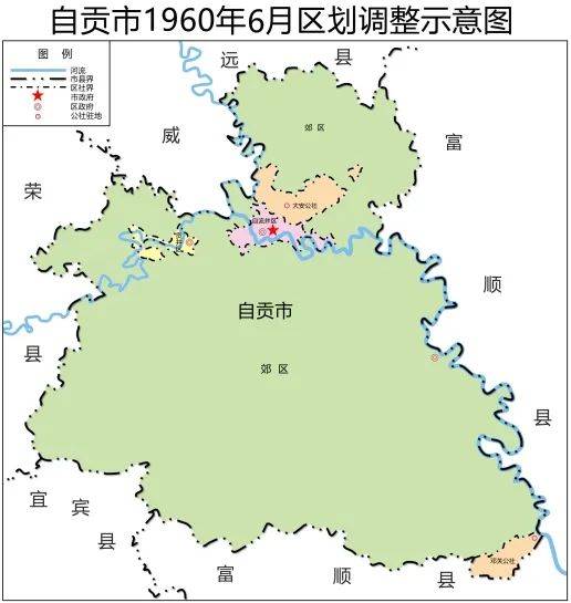 图3:自贡市1960年6月区划调整示意图