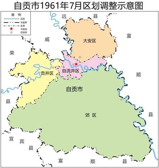 图4:自贡市1961年7月区划调整示意图