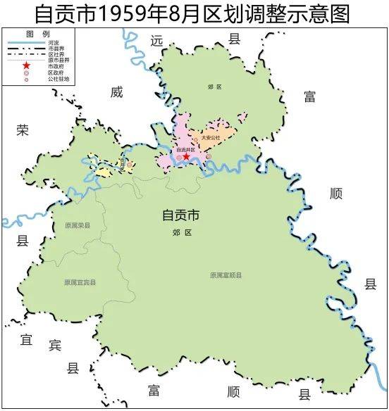 图1:自贡市1959年8月区划调整示意图