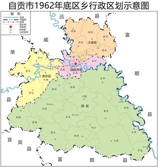 图6:自贡市1962年底区乡行政区划示意图