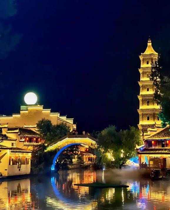 铜陵的宝藏小镇~白天,小桥流水,青砖黛瓦,鸳鸯湖的莲花雨中静静开放,宛如一幅吴冠中的江南水乡水墨画。夜晚,华灯初上,流光溢彩,小镇好像变成一个奇妙的漫画世界。