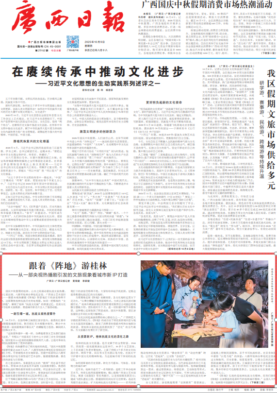 国庆中秋假期的桂林,山水之间涌动着抗战文旅热潮。在七星岩洞、八路军桂林办事处纪念馆、广西省立艺术馆旧址……循着央视热播剧《阵地》取景地打卡的游客络绎不绝。这部聚焦桂林抗战历史的电视剧,如同一把精准的“文化钥匙”,解锁了桂林“抗战文化城”的厚重记忆,优质文化IP为桂林文旅焕新、塑造城市新名片注入了强劲动能。