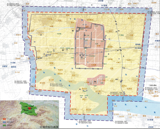 内城是在汉晋洛阳都城旧基上重修沿用,城圈南北约九里,东西约六里,墙外环绕有护城河。总面积约9.5平方千米。