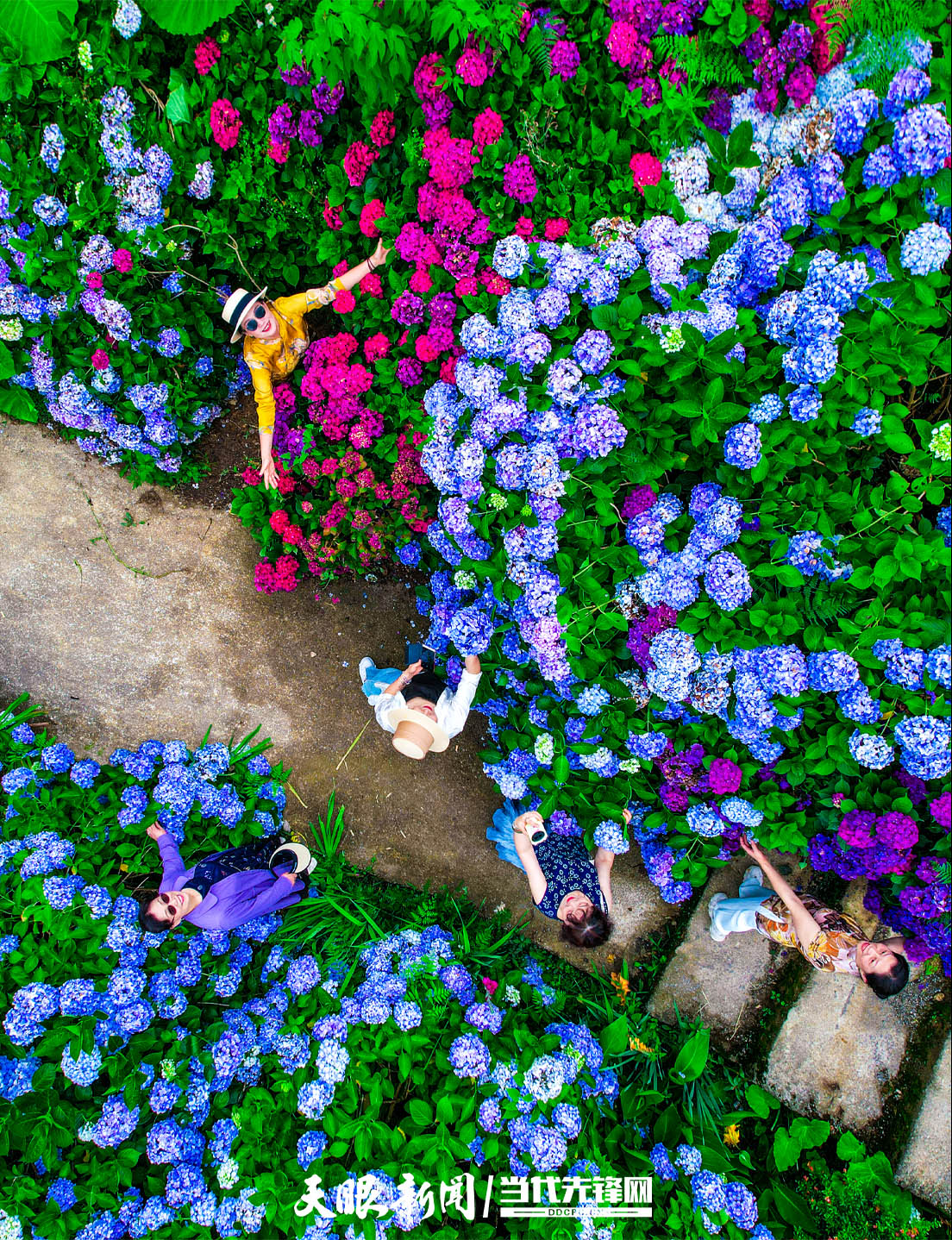 贵阳市白云区花趣坊农庄内,游客徜徉在盛放的花海中。该区发挥气候生态优势,推动农文旅融合发展,打造多个特色乡村旅游景点。