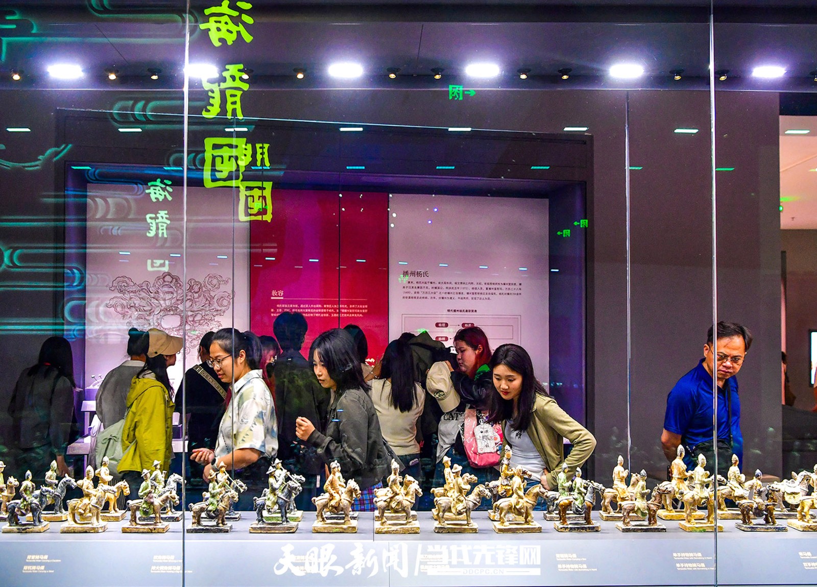 图为游客在贵州省博物馆,近距离感受贵州的历史文化底蕴和多彩的民族风情。