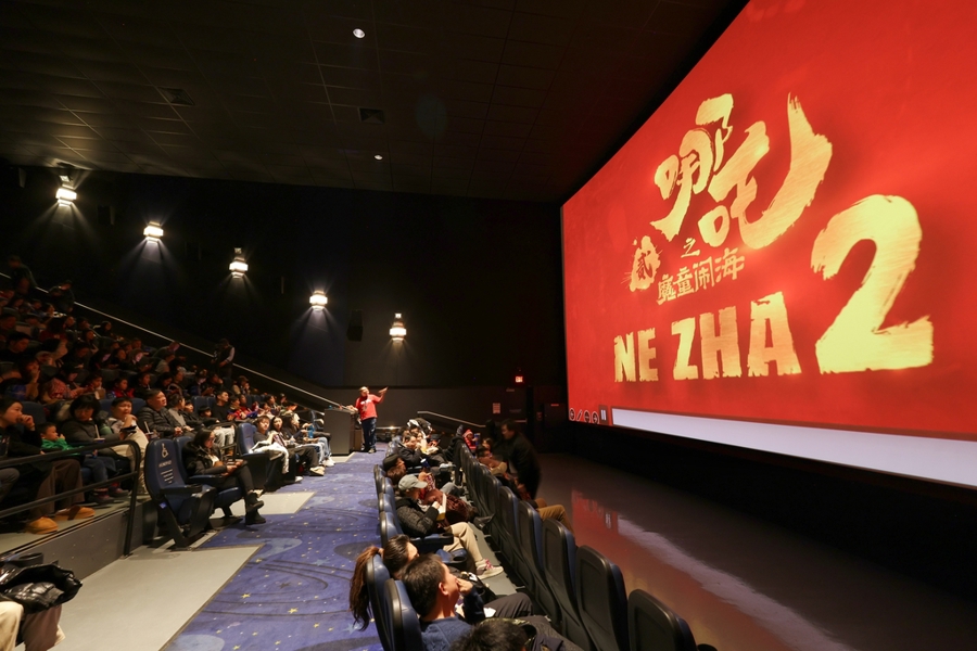 《哪吒之魔童闹海》多伦多首映礼在加拿大大多伦多地区万锦市(Markham)举行,观众们在影厅内观赏该片。