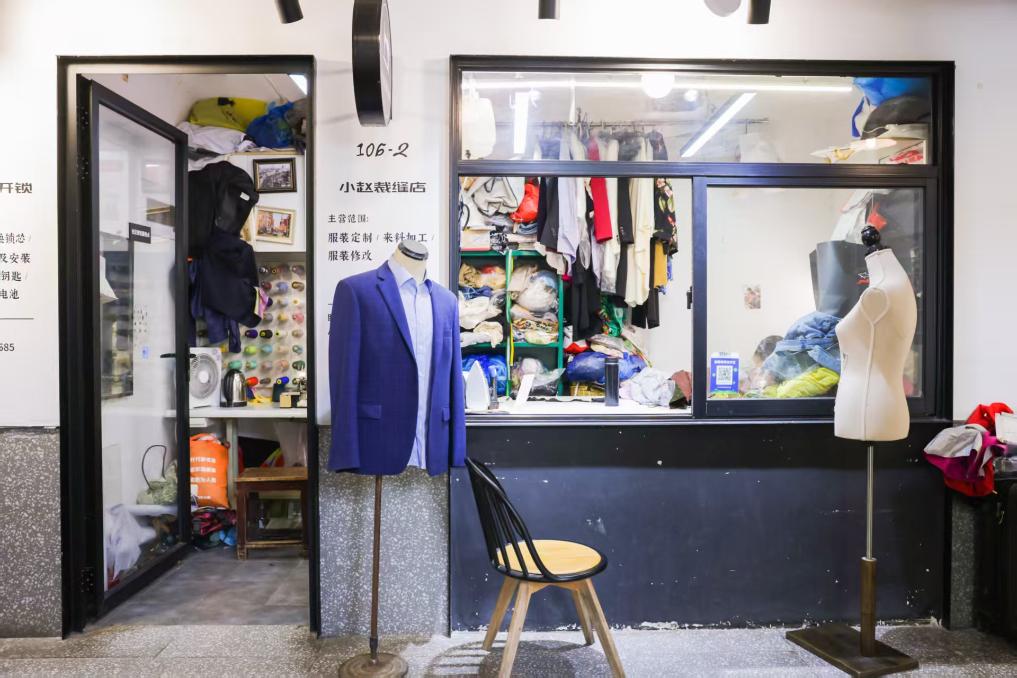 上海江苏路社区所辖愚园路1088弄里打造的“诗和远方”的公共市集里的裁缝店。新华社记者郑钧天 摄