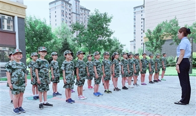 承德市双滦区欢乐江山社区与物业公司开展小区暑期夏令营体能训练活动。