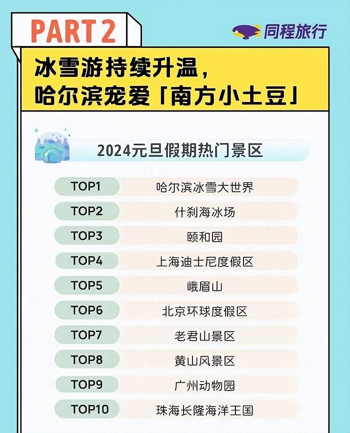 同程旅行平台数据,哈尔滨旅游热度同比上涨240%,在全国目的地旅游热度榜单中排名第四,预计当地旅游热潮还将延续至寒假和春节假期。马蜂窝大数据显示,冰雪大世界18日正式开园后,哈尔滨热度更是环比暴涨300%,一度力压上海迪士尼成为最热旅游目的地。